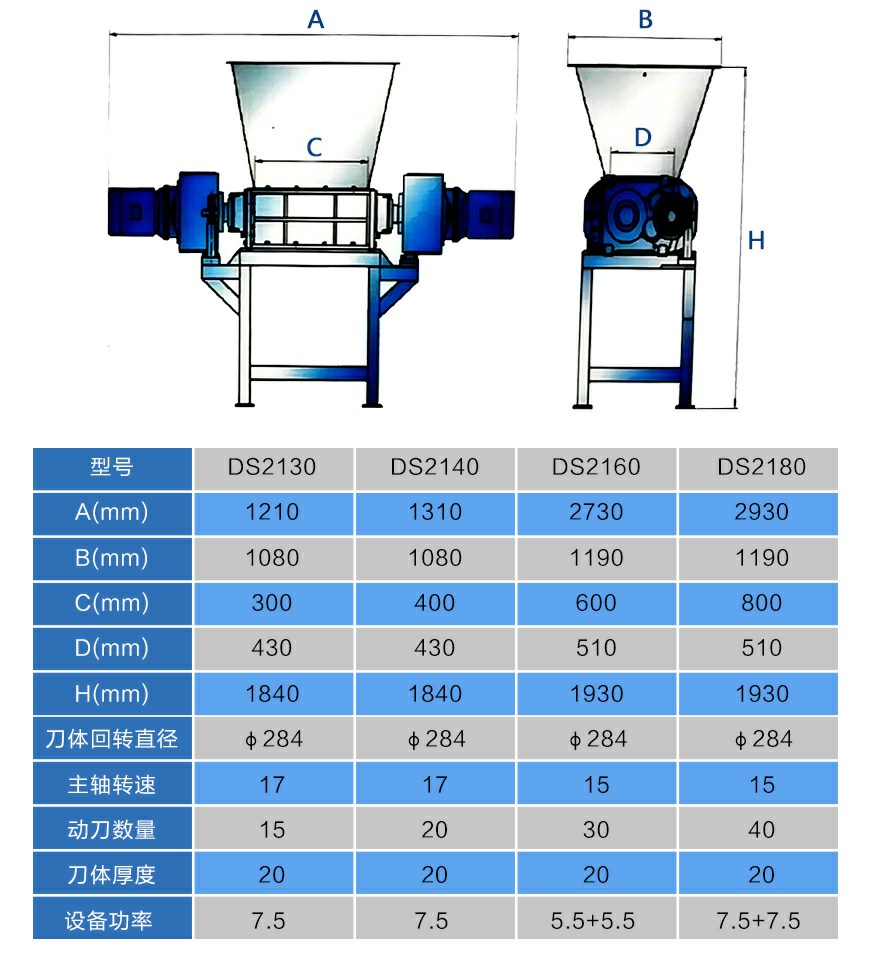 橡膠撕碎機由箱體、電機、工業齒輪箱、六棱主軸、進口刀具、底刀、機架、軸承箱等主要結構組成。 1.厚重動刀,破碎效率高,刀具均采用合金鋼鑄造,堅固使用時間長。 2.框架板材厚,可抗高扭矩,較堅固。 3.采用微電腦(PLC)自動控制,設啟動、停止、反轉及超載自動反轉控制功能。 4.設備具有低轉速、大轉矩、低噪音、粉塵可達到環保標準的特點。 5.易于調整、維護費用低、經濟耐用。 6.刀具的厚度和刀爪數量可根據不同物料更換。